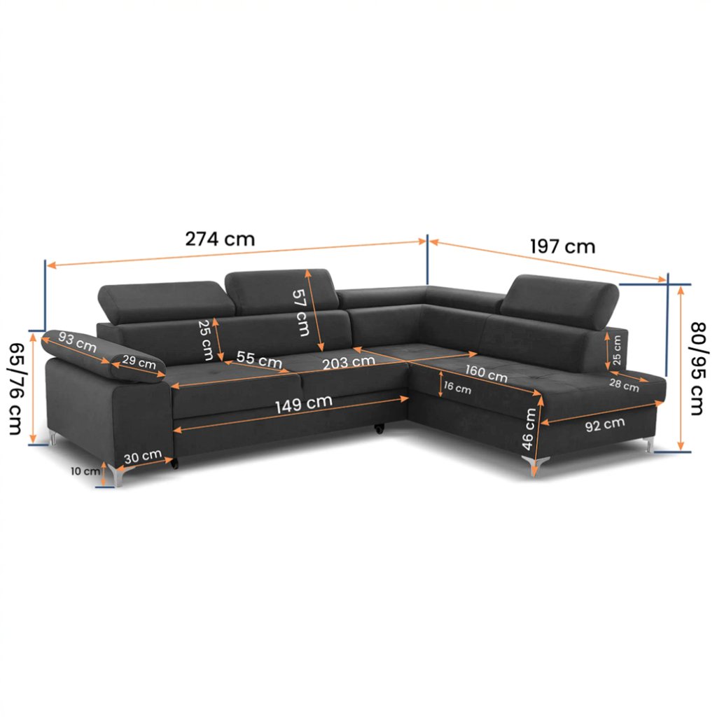 Rohová sedací souprava MADRID je spolehlivým parťákem do každého obýváku. Nabízí pohodlné sezení pro rodinu i návštěvy – a když se večer protáhne, snadno ji rozložíš na prostorné lůžko. Uvnitř se skrývá praktický úložný prostor, kam se vejdou deky, peřiny nebo třeba tvoje oblíbené dobroty. Potahy jsou ušité z tkanin s certifikací OEKO-TEX®, takže si můžeš být jistý, že jsou šetrné k tobě i k přírodě. A aby ladila i s tvým vkusem? Vyber si barvu látky – sedačku nabízíme v několika elegantních variantách.