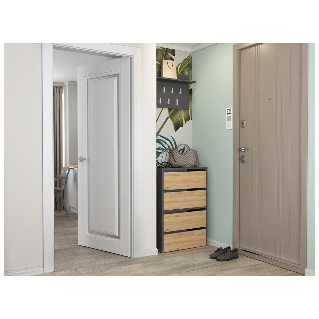 Za každými dvířky se nacházejí 4 prostorné police na obuv.