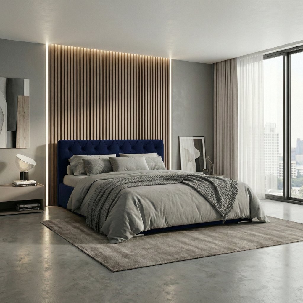 Čalouněné postele se vyznačují pohodlným a měkkým čalouněným čelem a bočními stranami. Tyto postele jsou obvykle vyrobeny z pevného rámu a jsou opatřeny pevnými rošty. Výplň čela a bočních stran postele bývá vyrobena z měkkých materiálů, jako je tkanina nebo kůže, a může být doladěna různými detaily, jako jsou zdobené knoflíky, aplikace nebo švy. Tyto postele mohou být dodávány v různých velikostech, barvách a stylech, což jim umožňuje být umístěny do různých typů interiérů, od moderního po tradiční. Navíc čalouněné postele nabízejí dostatek prostoru pro uskladnění, jako jsou úložné prostory pod matraci.