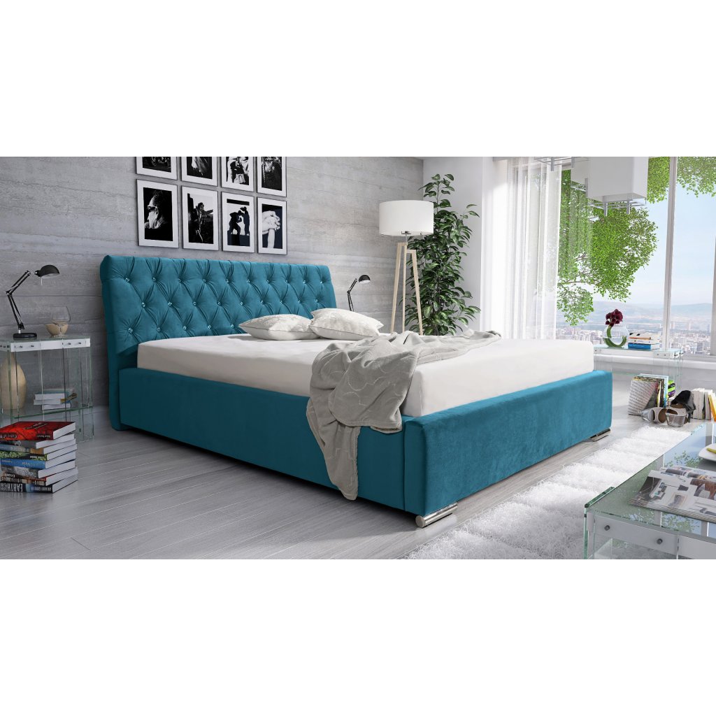 Čalouněná postel LUXURIOUS 180x200 cm, Trinity 2313 Modrá s kovovým rámem úložného prostoru
