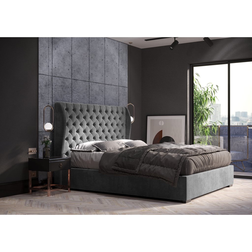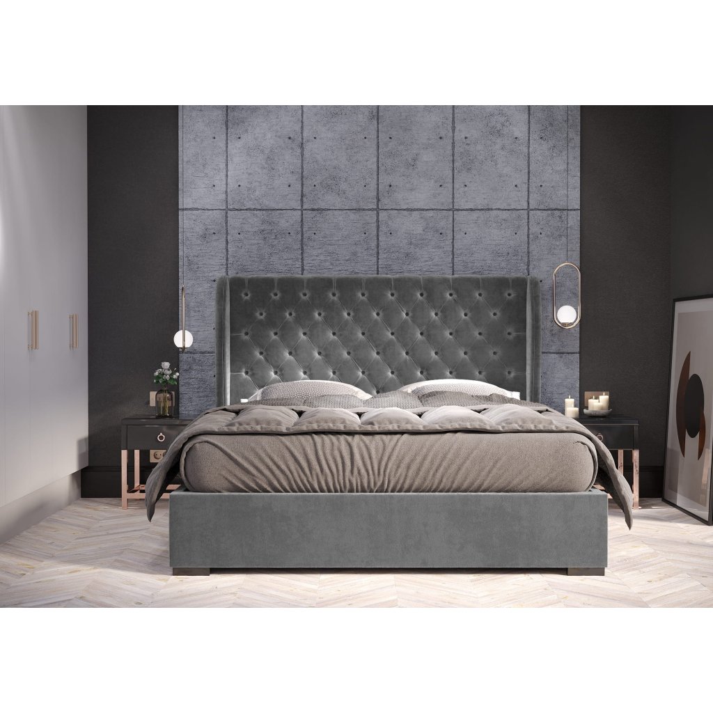V prodeji je pohodlná a moderní postel čalouněný rámem a prostorem na ložní prádlo.