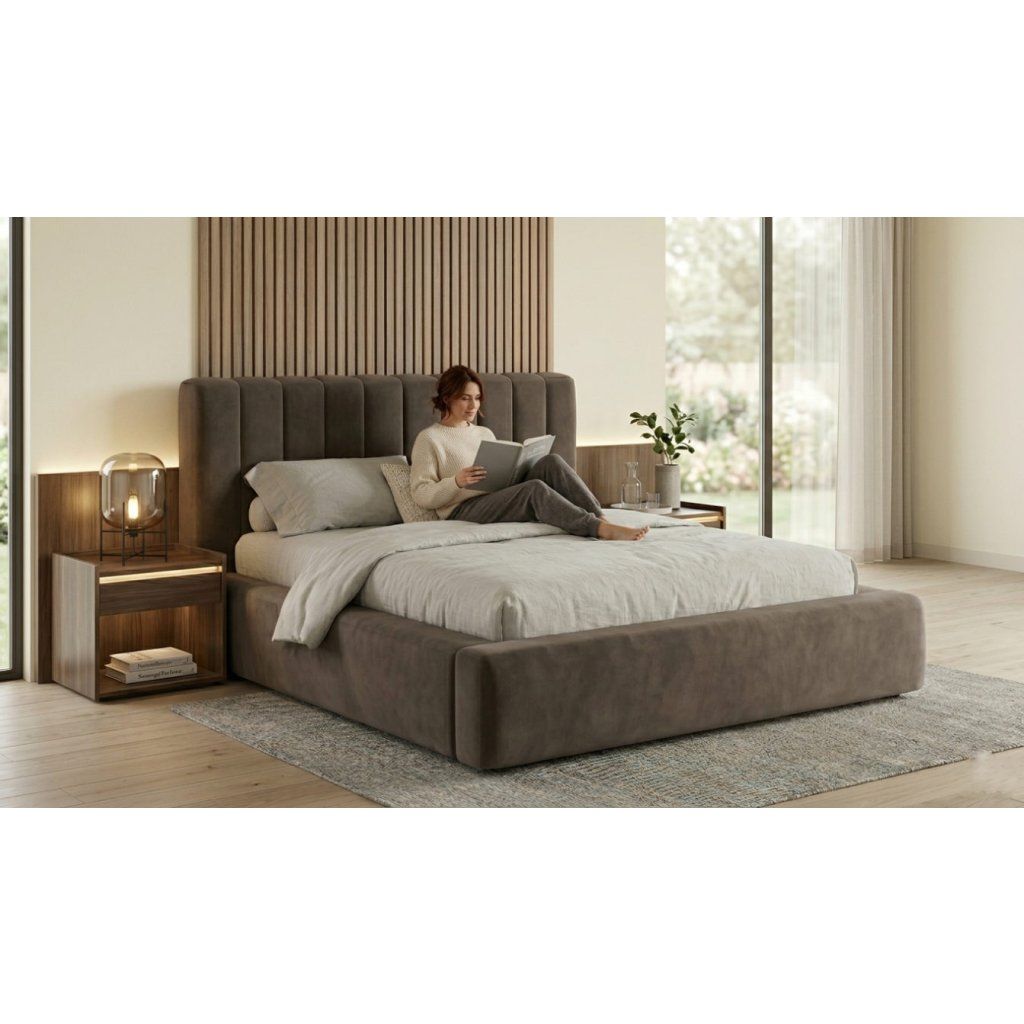 Čalouněná postel s vysokým čelem BORMINI+ Velutto, 140x200 cm