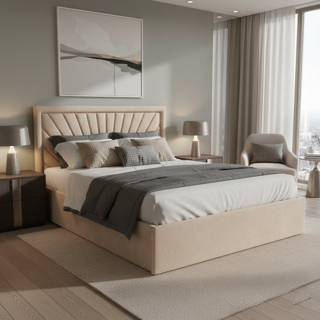 Elegantní čalouněné čelo dodá ložnici útulnost a oporu při čtení nebo večerním odpočinku.