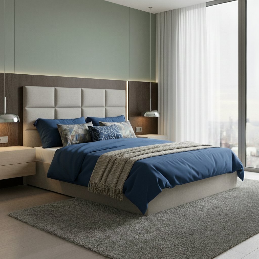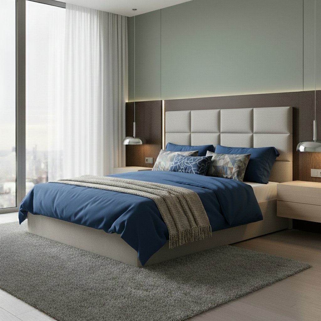 Elegantní čalouněné čelo dodá ložnici útulnost a oporu při čtení nebo večerním odpočinku.