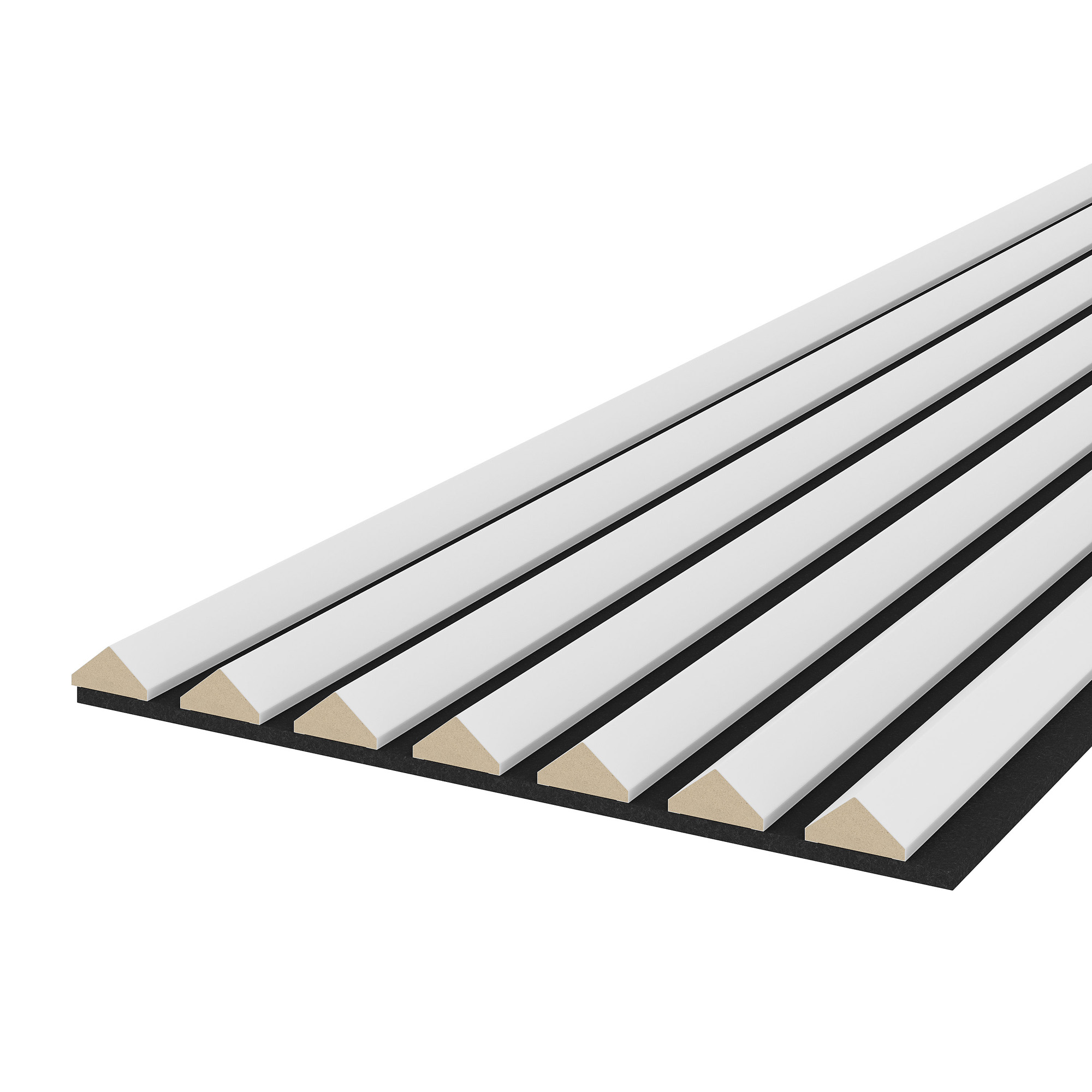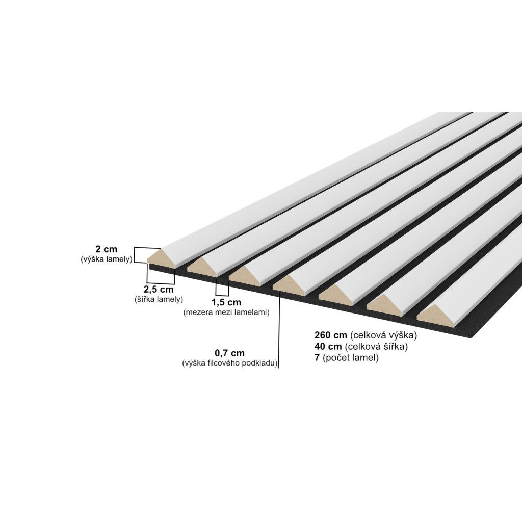 Dekorativní nástěnné lamely s filcem ▲ (trojúhelník), Bílá mat / černý 260x40x0,7 cm - 7 lamel