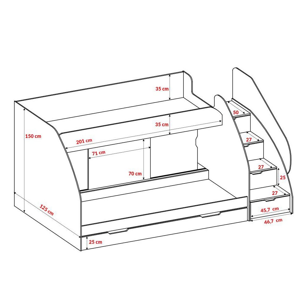 Každý schod je prostorný šuplík. Další obrovský úložný prostor se nachází pod spodním lůžkem. Ideální pro hračky i lůžkoviny.