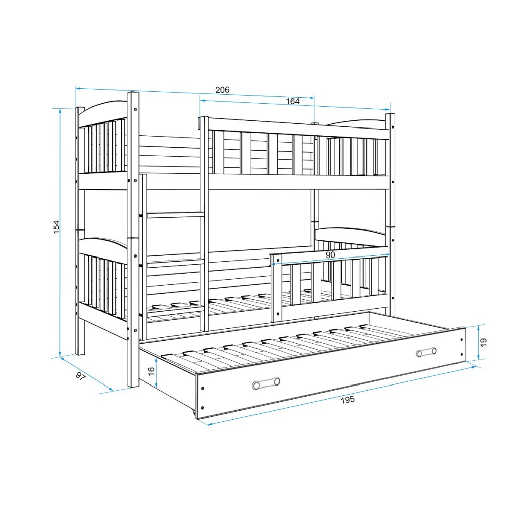 Dětská patrová postel s přistýlkou JAKE 4, 90x200 cm