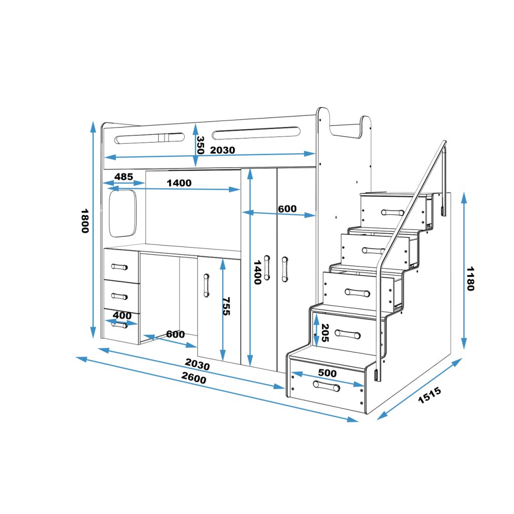 | Funkce/vybavení: | S úložným prostorem, Se šuplíky, Se skříní, Se schody, S psacím stolem |