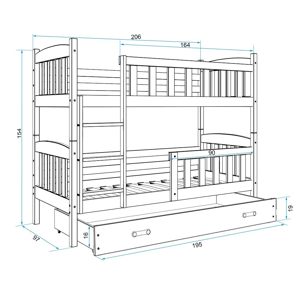Dětská patrová postel se šuplíkem JAKE 3, 90x200 cm