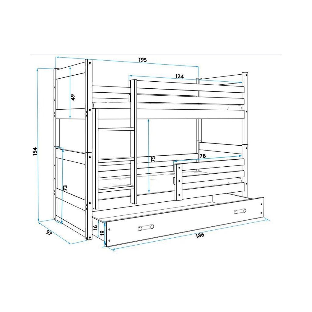 Dětská patrová postel se šuplíkem RICK 3, 90x190 cm