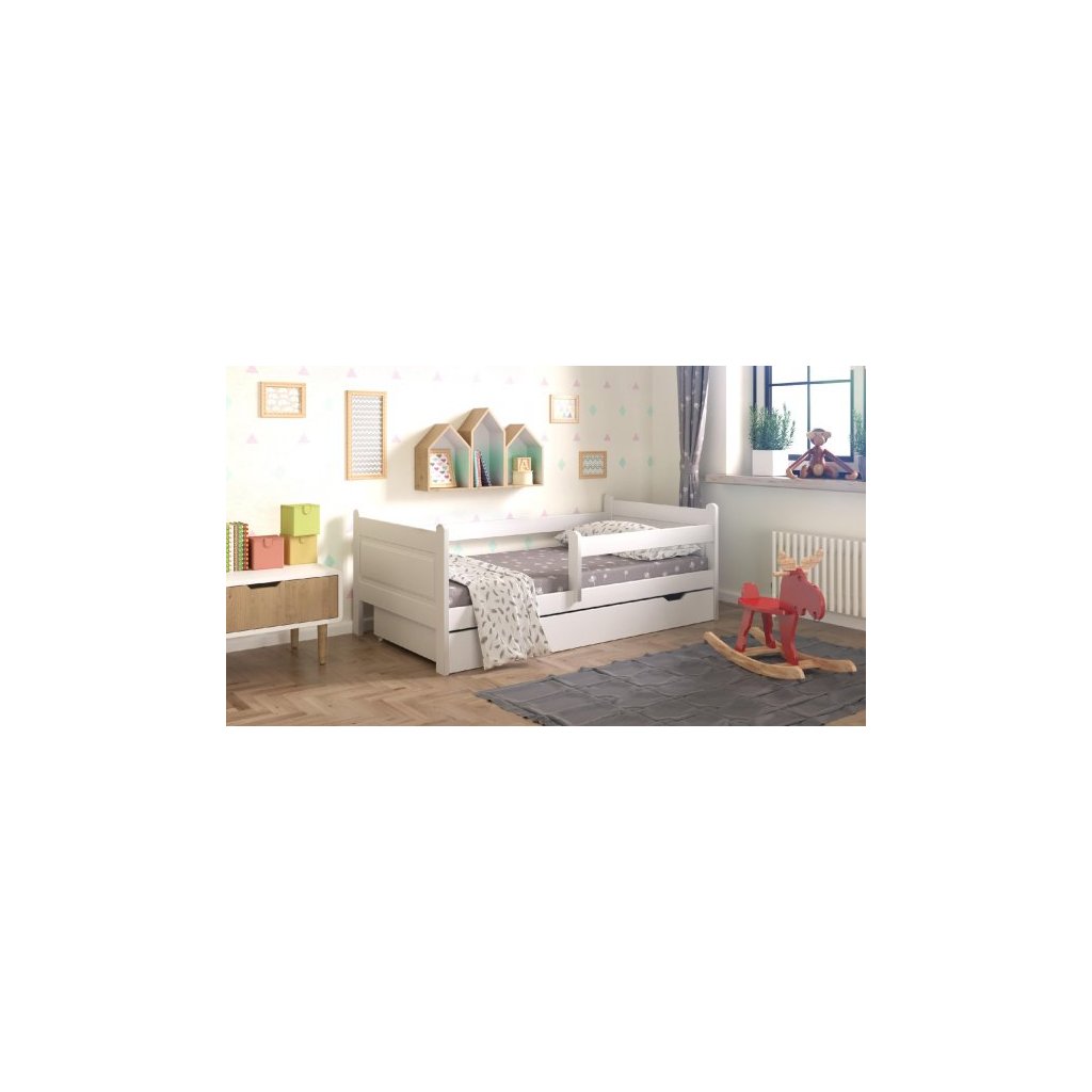 Dětská postel je vyrobena z masivu borovice. Postel nejen pro větší děti s ochrannou bariérkou. Bariérku je možno namontovat jak z levé, tak i z pravé strany. Postel je vyrobena z masivu borovicového dřeva a součástí je i objedmná zásuvka. Součástí této postýlky jsou z bezpečnostních důvodů zaoblené rohy. Postel je lakována ekologicky nezávadným lakem, vhodným pro styk s dítětem. Snížený práh, umožňuje používat tuto postel i pro nejmenší děti. Lakováno vodou ředitelný ekologickým lakem. NOSNOST POSTELE JE 80 KG.