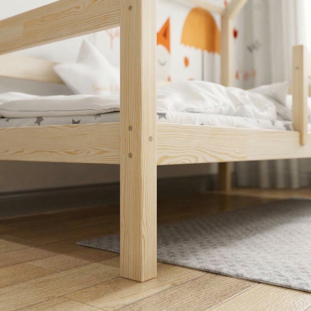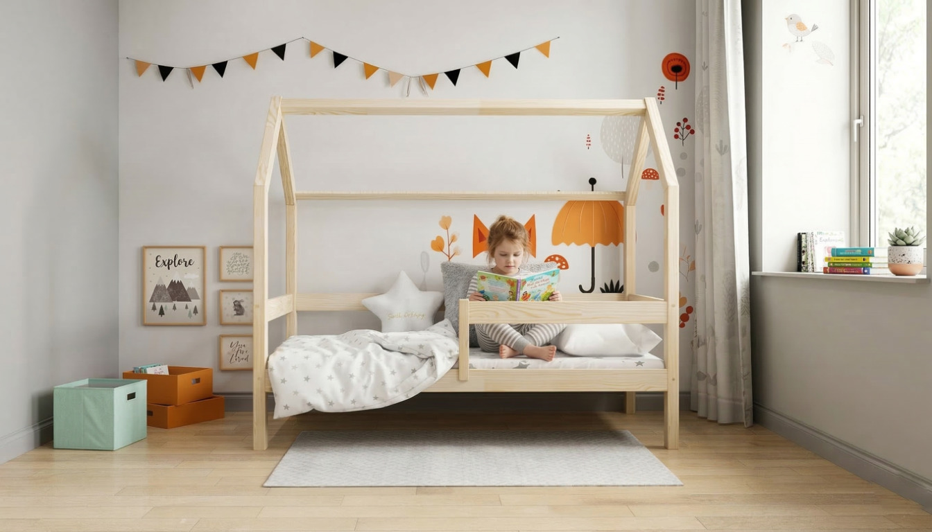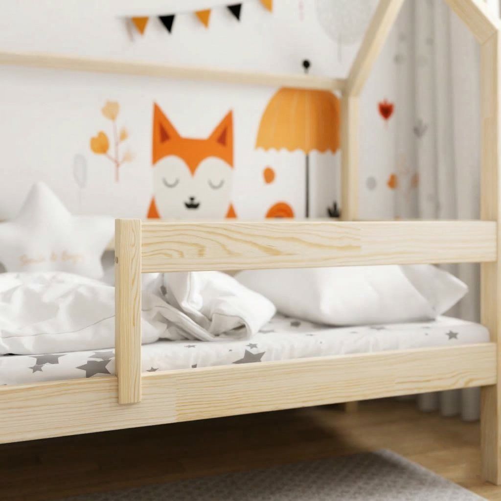 Postel Milo přináší do dětského pokoje hravost i útulné místo pro klidný spánek. Její konstrukce ve tvaru domečku podněcuje dětskou fantazii – přes den může sloužit jako malý úkryt na hraní a večer jako bezpečné místo pro odpočinek. Praktická zábrana pomáhá chránit dítě během spánku a dodává rodičům větší klid. Postel je vyrobena z kvalitního borovicového dřeva a vyniká jednoduchým, přirozeným designem, který se snadno sladí s každým dětským pokojem.