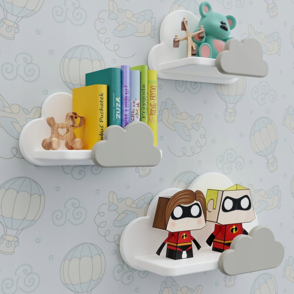 Na poličku můžete umístit oblíbené hračky, vystavit autíčka, plyšáky, panenky, suvenýry z cest nebo jiné drobnosti.