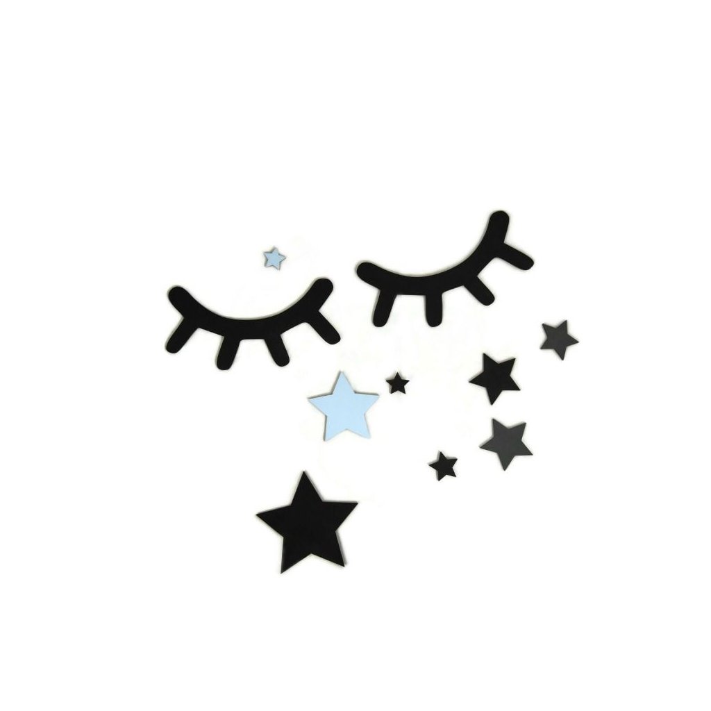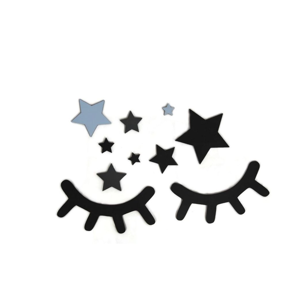 Tato dekorace vykouzlí krásnou kulisu u dětské postýlky. Sada na zeď vyrobená výhradně ze dřeva s motivem zavřených očí s řasami.