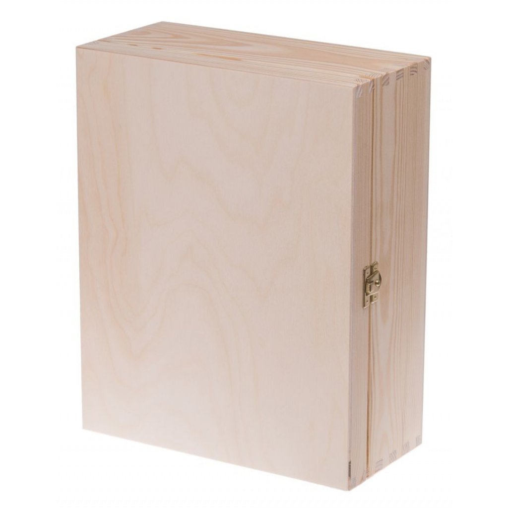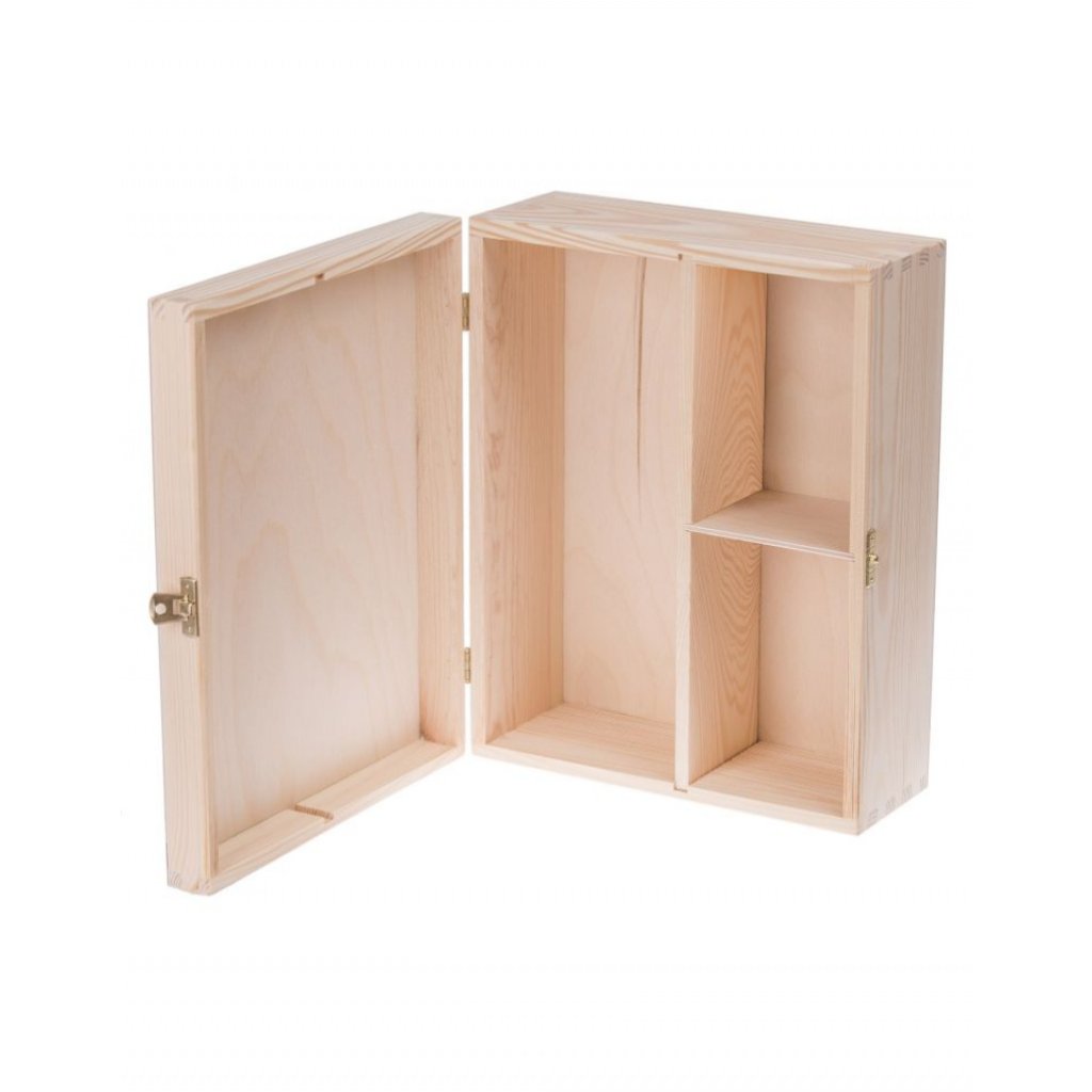 Dřevěná krabička na láhev a dvě sklenice - 30x23x11 cm, Přírodní