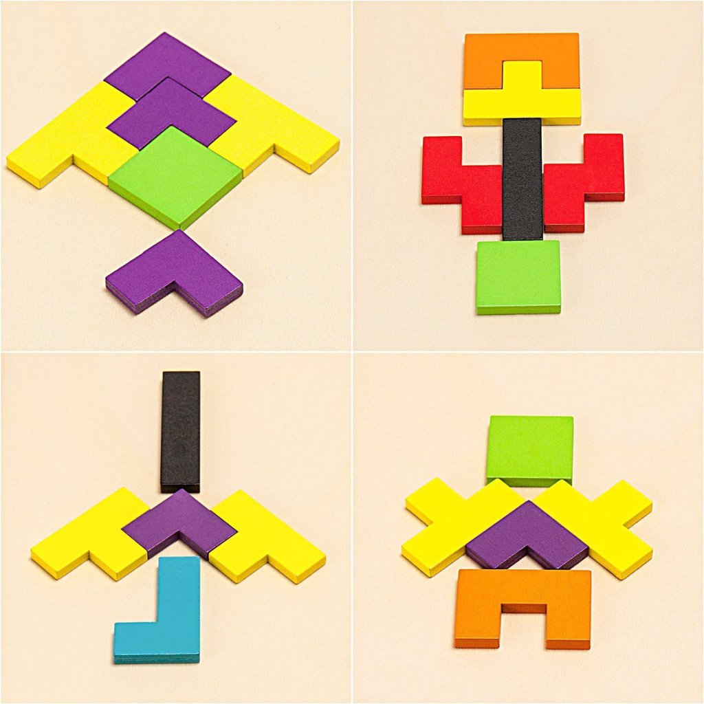 Super zábava pro všechny – to jsou dřevěné puzzle, ze kterých lze skládat různé obrazce – květinu, panáčka, domeček atd. Dřevěné puzzle podporují logické myšlení a představivost vašich dětí. Hlavně se přirozeně rozvíjí jejich motorické schopnosti. Díky tomu, že jsou jednotlivé dílky barevné, učí se také pečlivě rozpoznávat barvy a tvary.
