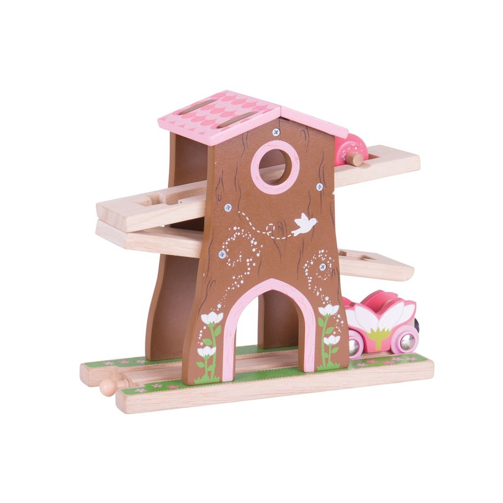 Podívejte se na valící se disk, jak uhání po dráze stromem dolů až do přistaveného vagónku. Skvělý doplněk k pohádkové vláčkodráze Bigjigs Rail a dalších dřevěných železničních souprav.