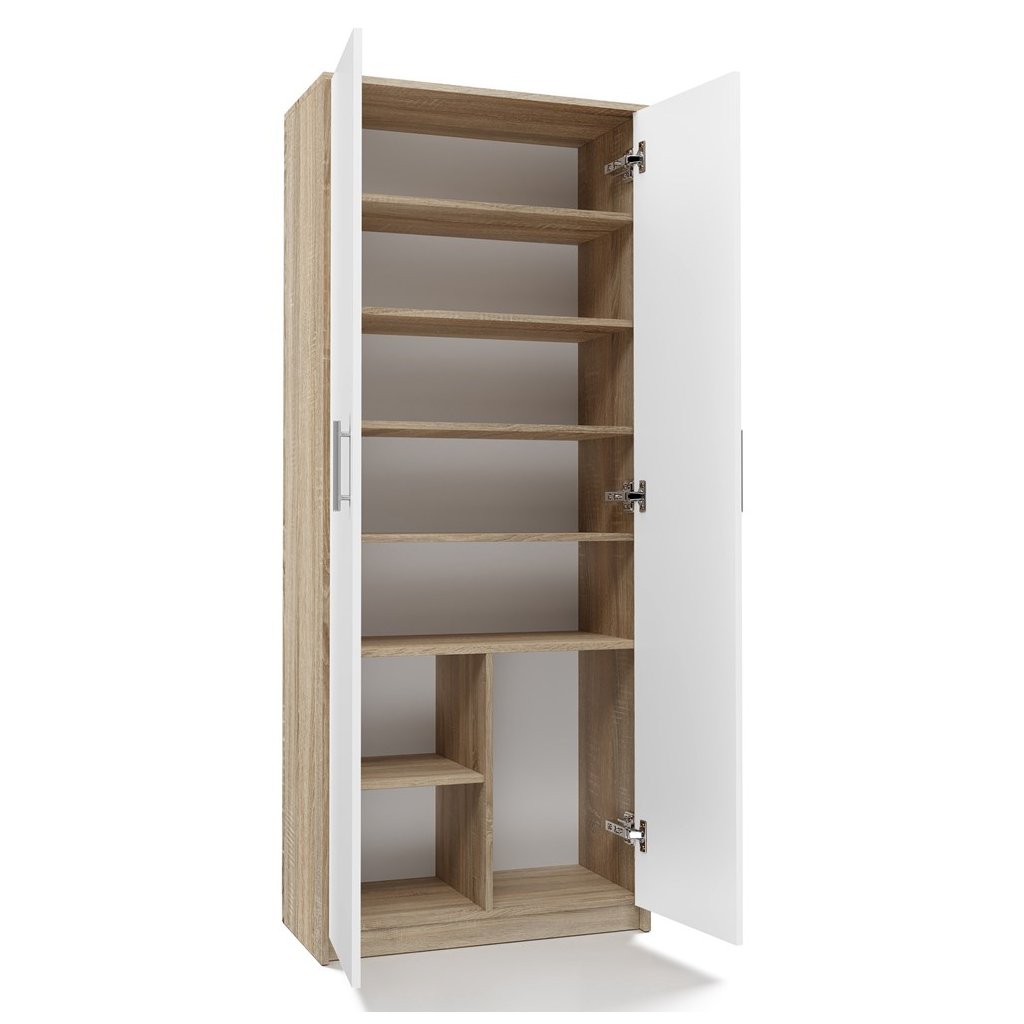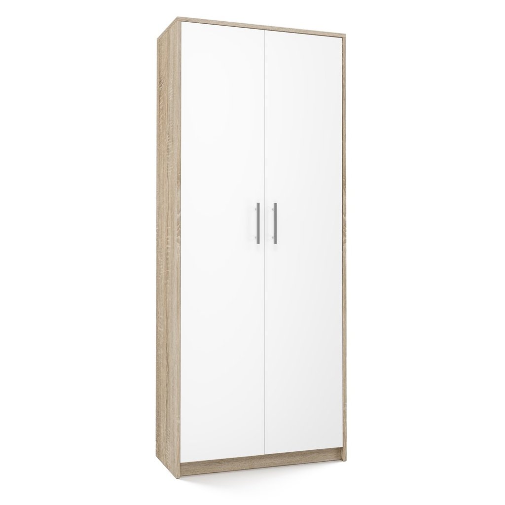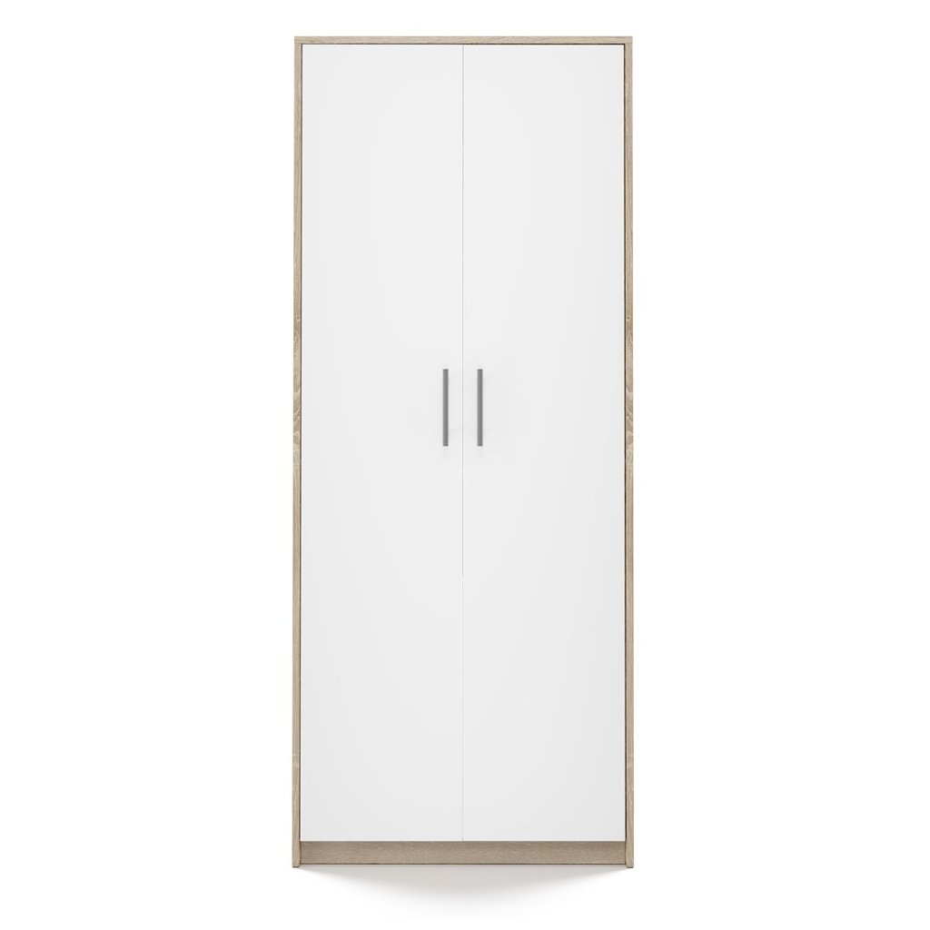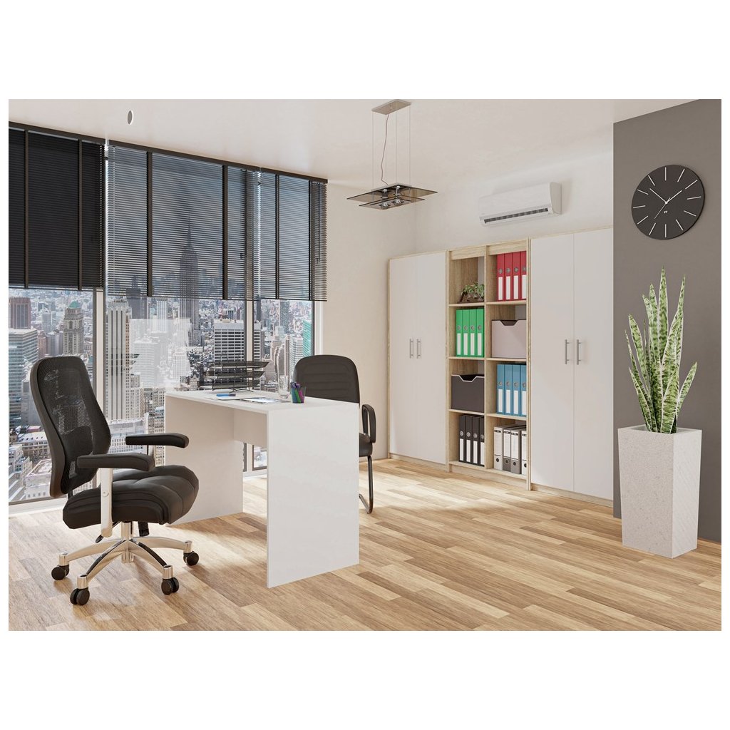 Kancelářská skříň s policemi a dveřmi OLIV 2D - Bílá / Dub sonoma