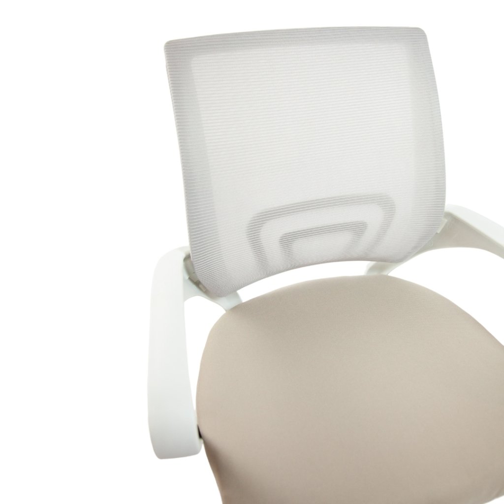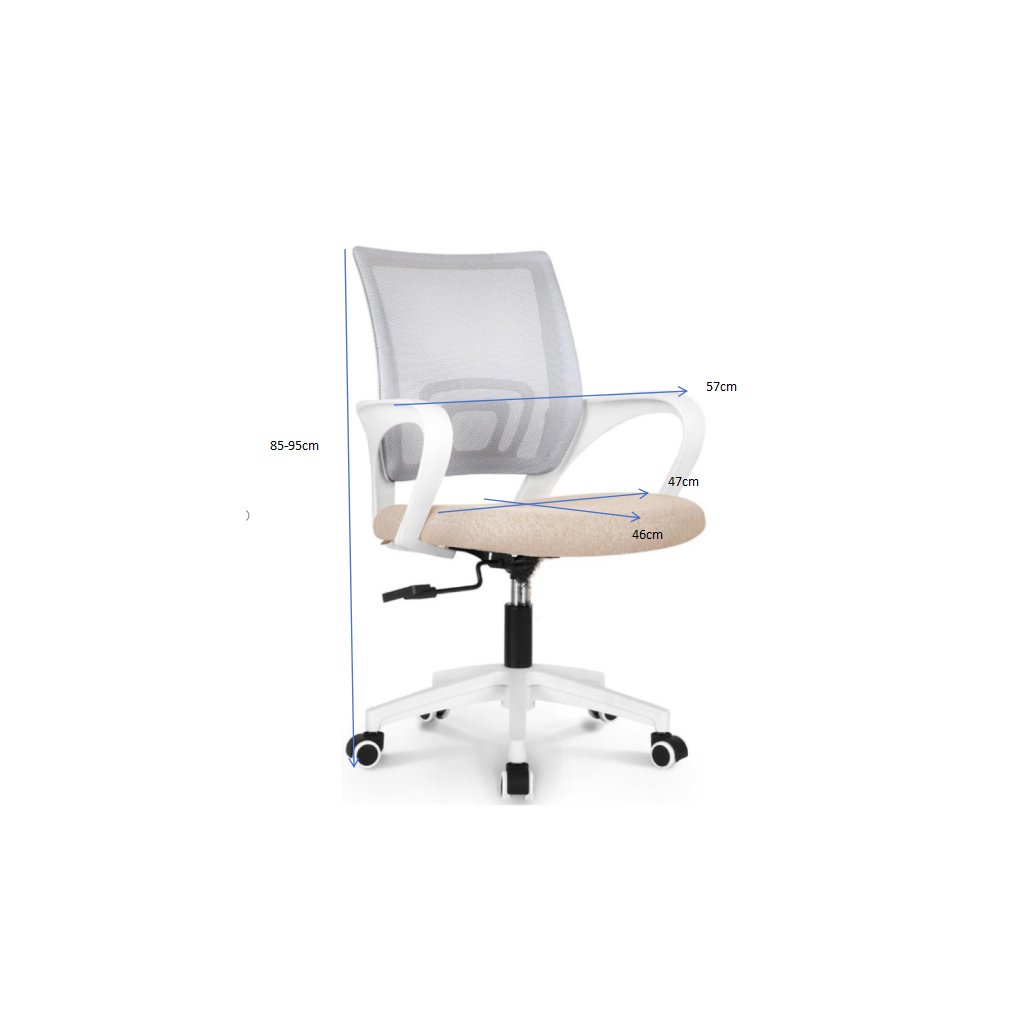 Elegantní kancelářská židle s béžovým látkovým potahem a bílou konstrukcí. Spojuje moderní design a prvotřídní materiály pro vysokou úroveň pohodlí. Béžová látka je měkká a odolná, bílá konstrukce dodává lehkou a sofistikovanou estetiku. Ideální pro každého, kdo hledá eleganci a funkčnost.