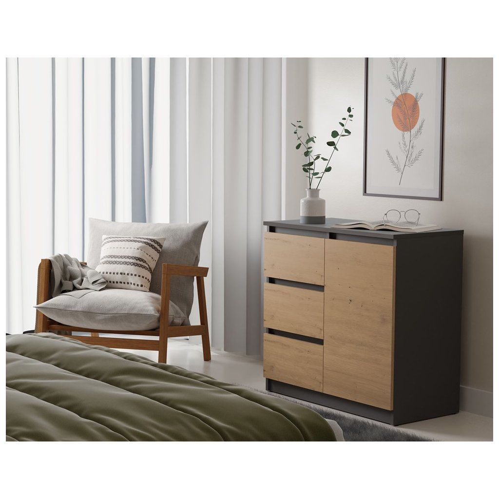 MODERNÍ KOMODA – 1 DVEŘE, 3 ZÁSUVKY