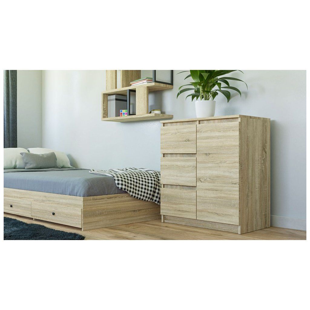Moderní komoda 1D3S je funkční a prostorný kus nábytku, který skvěle doplní interiér vaší ložnice, obývacího pokoje nebo dětského pokoje.