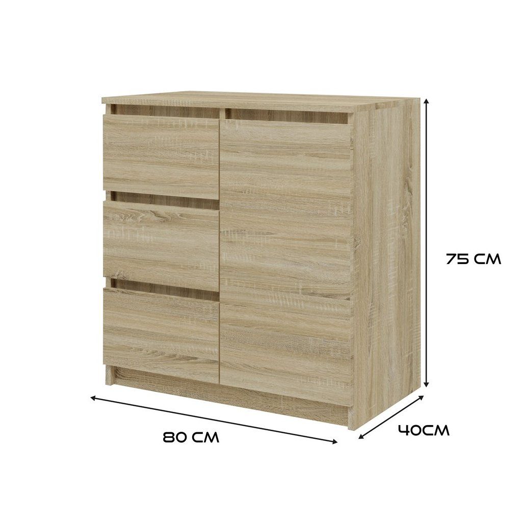 MODERNÍ KOMODA – 1 DVEŘE, 3 ZÁSUVKY