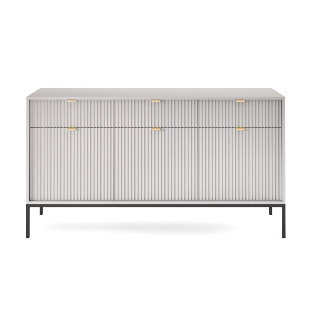 Představte si nejen moderní, ale také funkční kus nábytku, který se stane středobodem Vašeho obývacího pokoje - moderní komoda NEMO. Tento kousek nábytku je dokonalým spojením moderních prvků v dekoru Šedá s vysokými kovovými nohami v černé nebo zlaté barvě se zlatými úchytky.