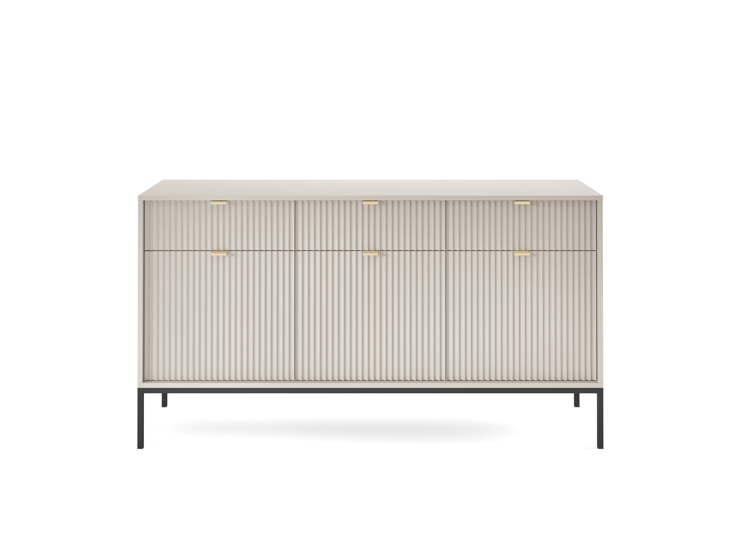 Vertikálně frézovaná čela, decentní úchytky a možnost volby černých nebo zlatých nožek dodávají nábytku moderní šmrnc i nádech luxusu.