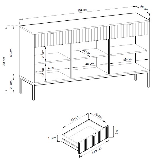 Komoda nabízí praktické řešení pro uložení oblečení, dokumentů i dalších drobností – vše má své místo a tvůj domov zůstává přehledný.