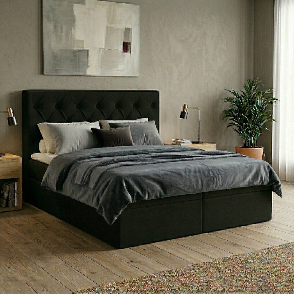 Kontinentální postel Elegant - Fresh s čalouněním nabízí skvělý komfort pro spaní a odpočinek. Je vybavena vysokou a stabilnízákladnou s integrovaným úložným prostorem, který nabízí místo pro uložení věcí. Postel je vybavena prvotřídní taštičkovou matrací a polstrováním pro pohodlné ulehnutí. Na vrchní části matrace je umístěn pěnový polštář - topper, který dodává další vrstvu pohodlí. Se svou výškou 60 cm postel nabízí neuvěřitelné pohodlí při vstávání.