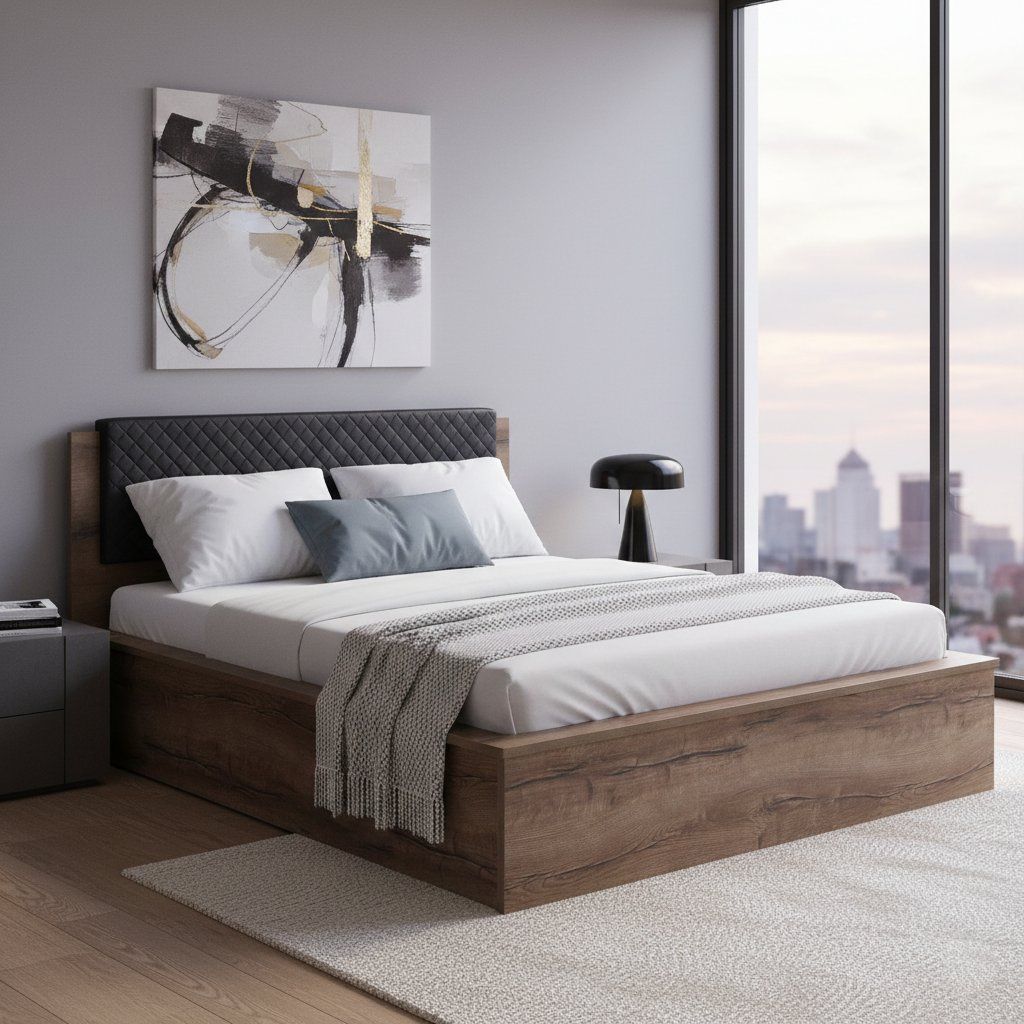Postel DEVON 160 x 200 cm - Dub Monastery , černé prošívané čelo z Eko-kůže