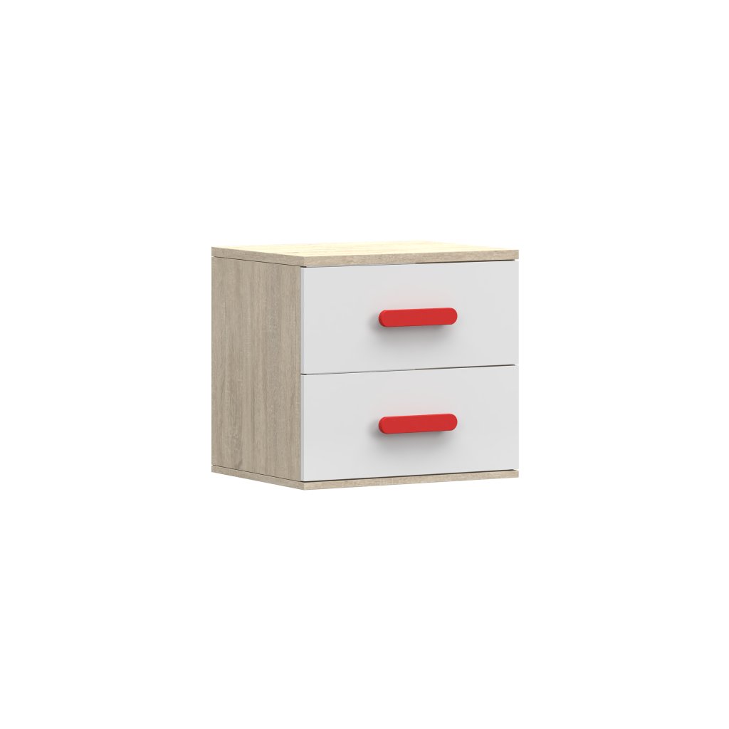 Noční stolek SMYK III 22, 55 cm Bílá + Dub Sonoma / Barevné úchytky