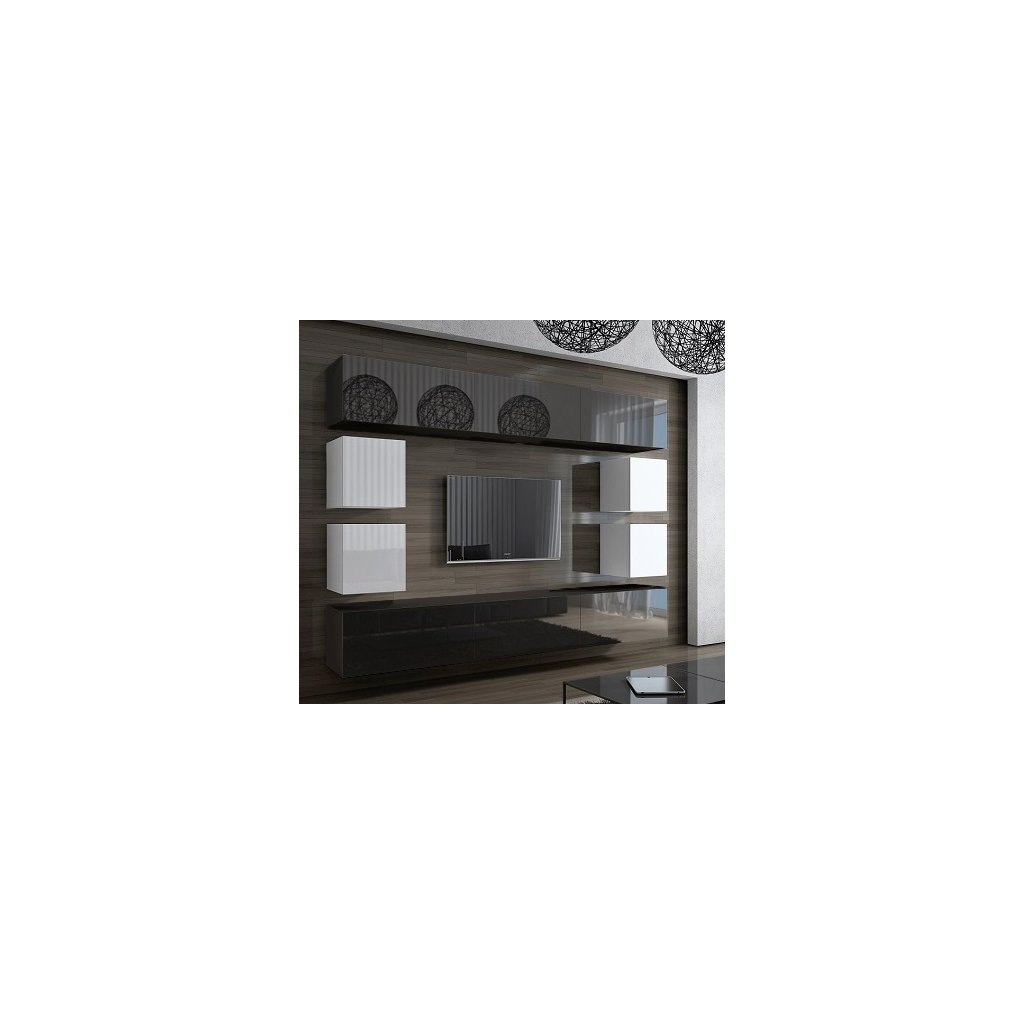 Obývací stěna RIO 3, 249 cm - Černo/bílý lesk