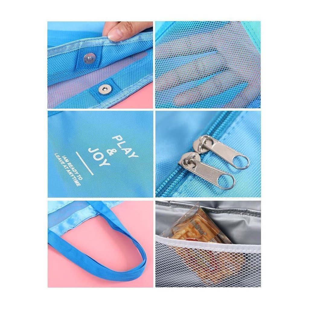 Originální a stylová plážová taška! Skvělý kousek, který se bude hodit ke každému outfitu a díky sytým barvám ho dokonale oživí. Tato plážová taška má tu výhodu, že jedna její část je termoizolační. To tedy znamená, že potraviny nebo nápoje v ní vydrží mnohem déle vychlazené než v obyčejné tašce!