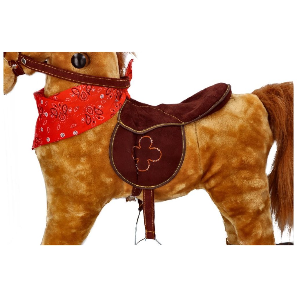 Koník je vyroben z měkkého plyšového materiálu ve světle hnědé barvě.
