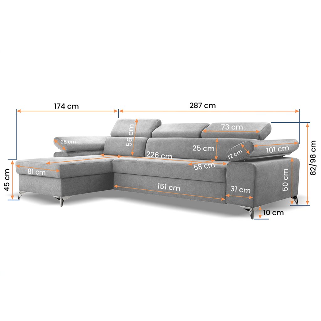 Rohová sedačka BARDI, 287 cm