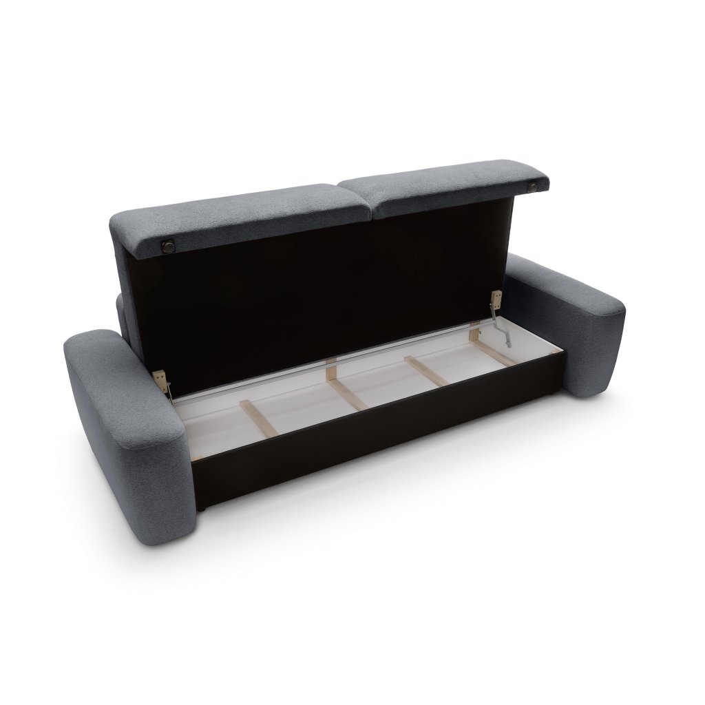 Praktický box schovaný uvnitř – na deky, polštáře i všechny drobnosti, co nechceš mít na očích.