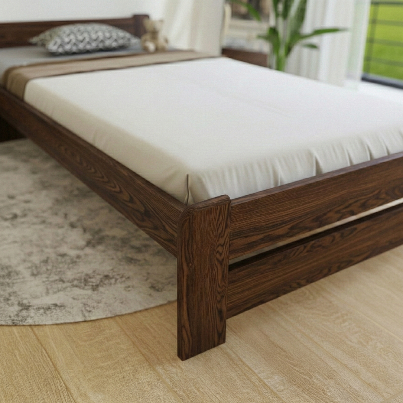 Evropa není jen postel. Je to poctivý kus nábytku z masivního dřeva, kde se precizní řemeslné zpracování setkává s nadčasovým designem. Čisté linie nechávají vyniknout přirozenou krásu dřeva a konstrukce navržená s důrazem na ergonomii poskytuje tělu stabilní oporu přesně tam, kde ji potřebuje. Díky pevnému masivnímu rámu se postel stává přirozenou dominantou pokoje a vytváří prostor pro klidný, ničím nerušený odpočinek.