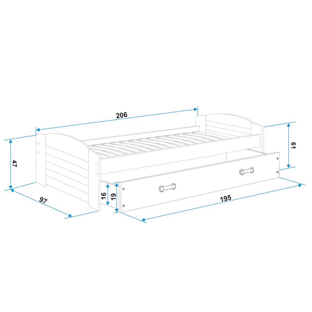 | Spací plocha: | 90 x 200 cm |