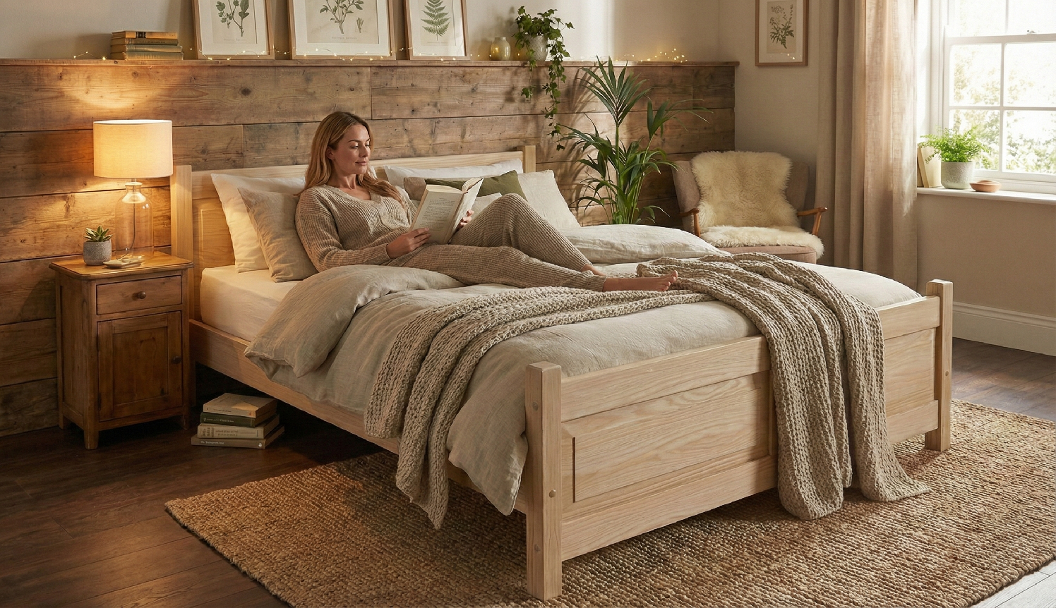 Calme není jen postel. Je to poctivý kus nábytku z masivního dřeva, kde se precizní řemeslné zpracování setkává s nadčasovým designem. Čisté linie nechávají vyniknout přirozenou krásu dřeva a konstrukce navržená s důrazem na ergonomii poskytuje tělu stabilní oporu přesně tam, kde ji potřebuje. Díky pevnému masivnímu rámu se postel stává přirozenou dominantou ložnice a vytváří prostor pro klidný, ničím nerušený odpočinek.