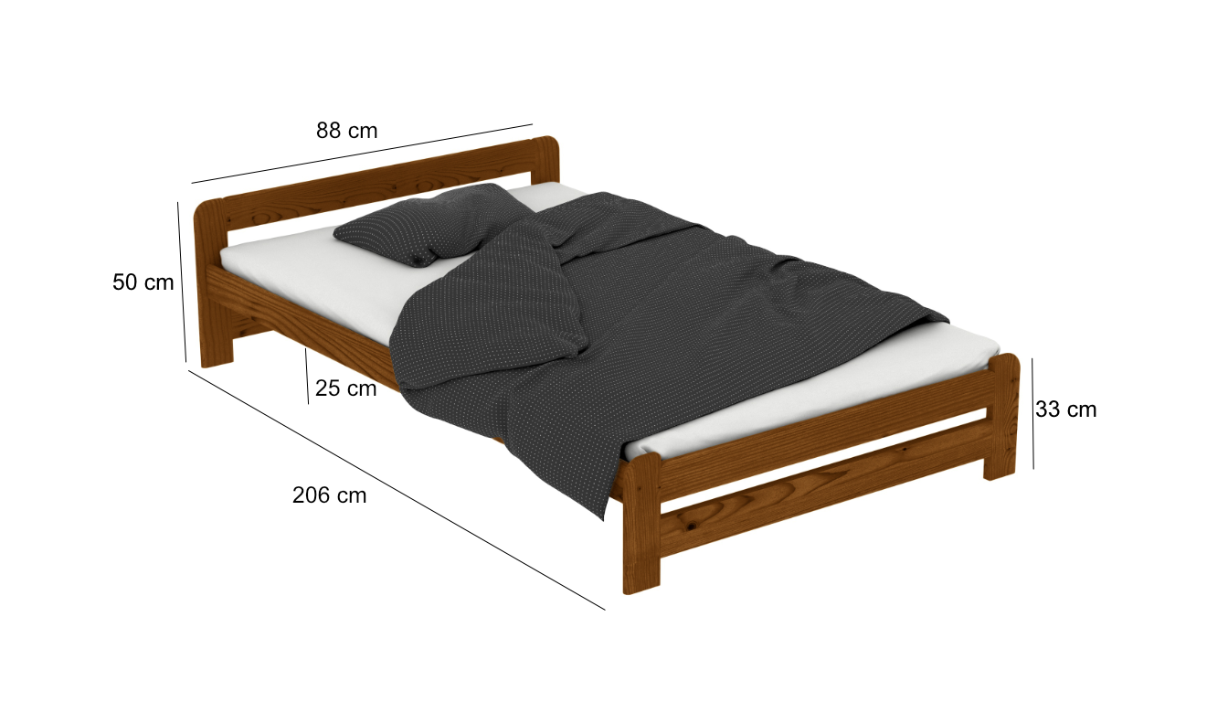 88 cm (šířka) × 206 cm (hloubka) × 50 cm (výška čela) x 33 cm (výška)