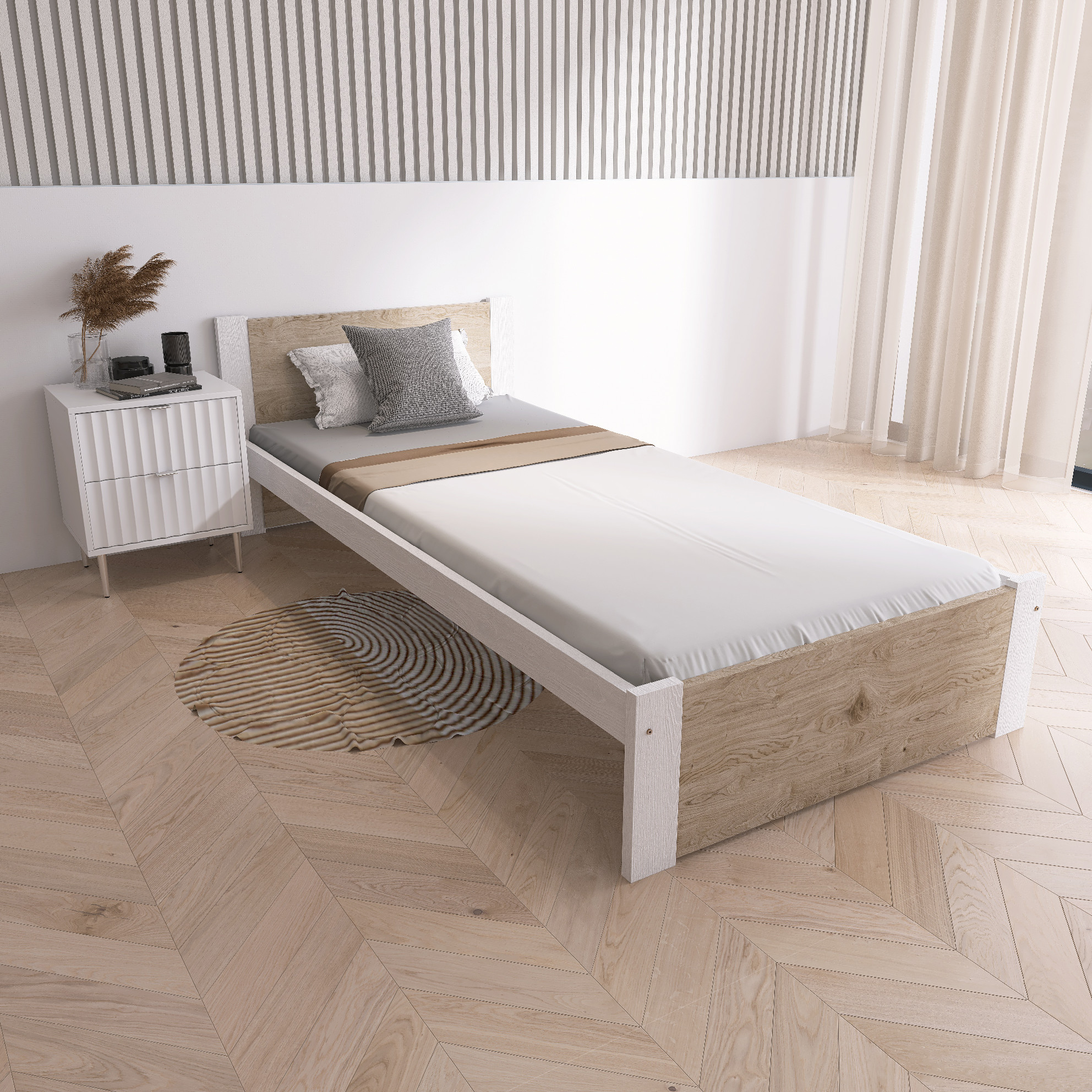 Postel z masivu Iris 90x200 cm, Bílá/DUB SONOMA
