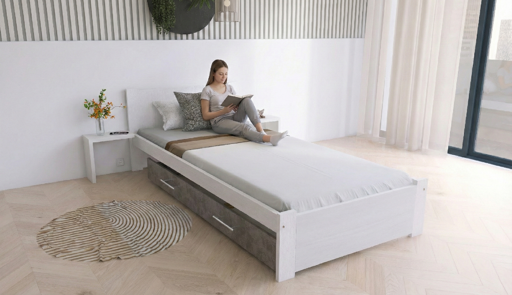 Přidejte si kvalitní rošt a pohodlnou matraci o rozměru 90 x 200 cm v příplatku.