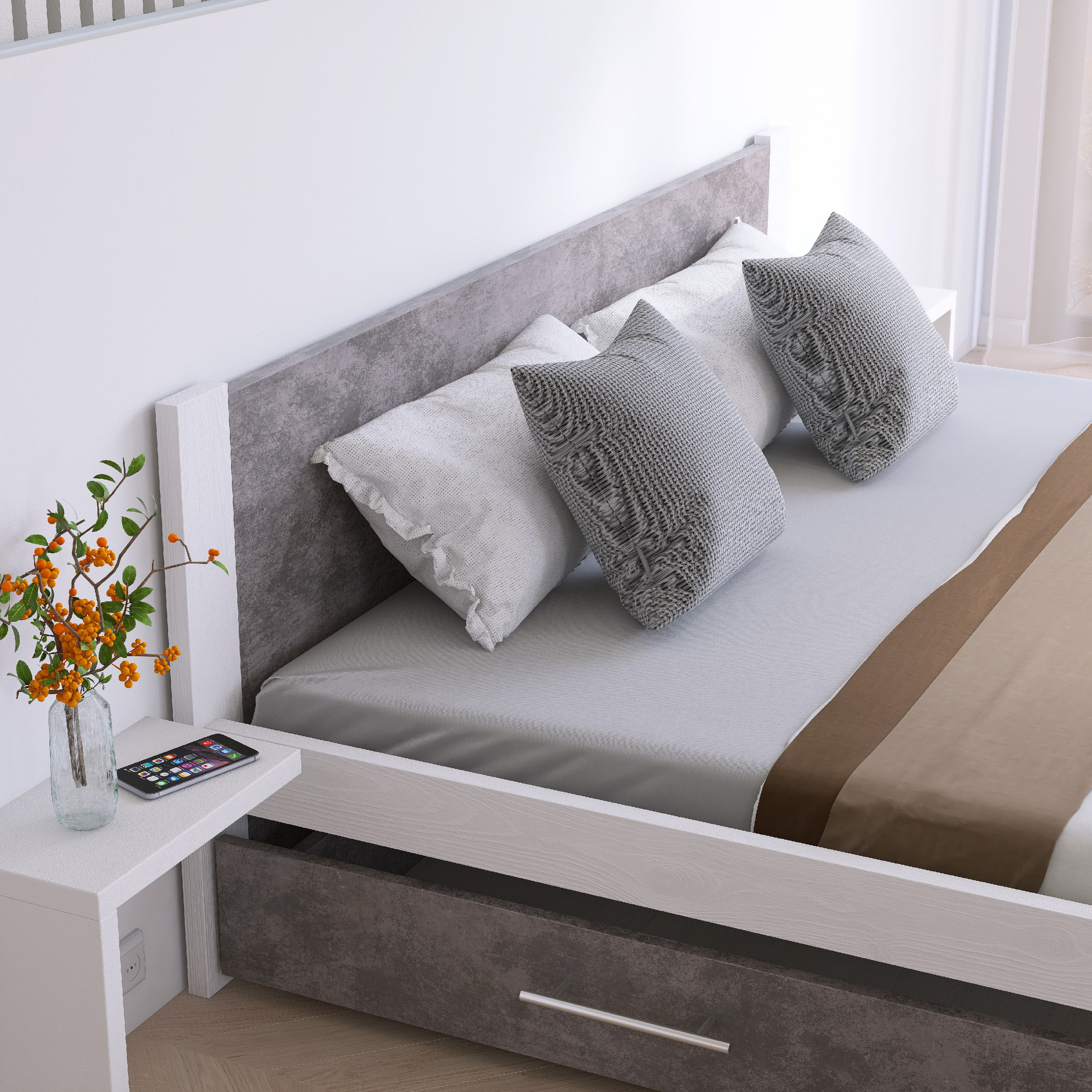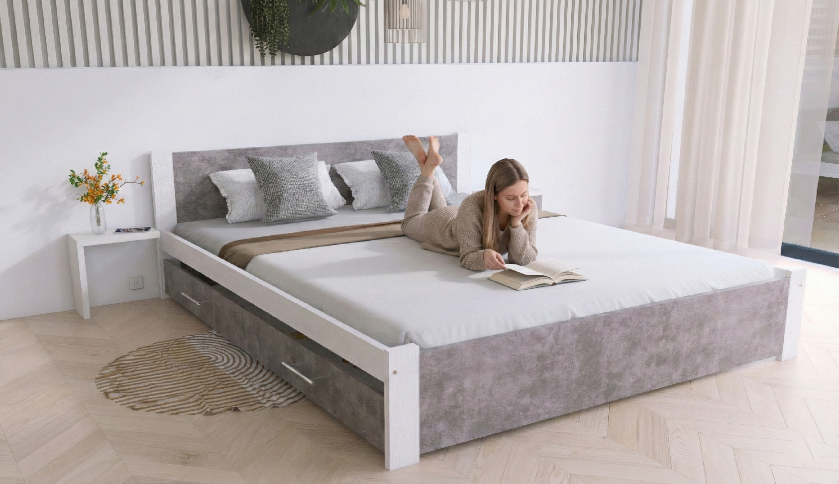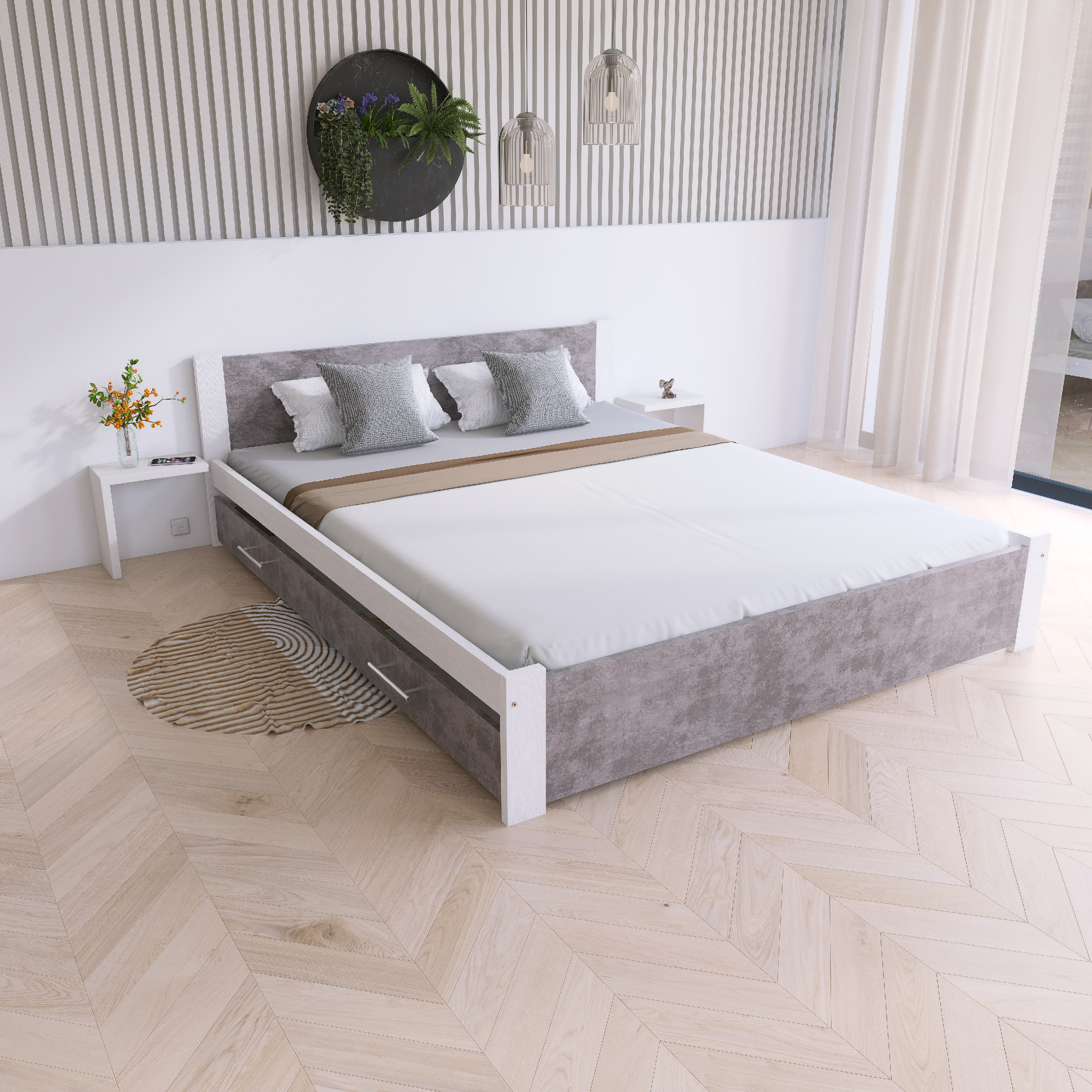Postel z masivu Iris 180x200 cm, Bílá/BETON