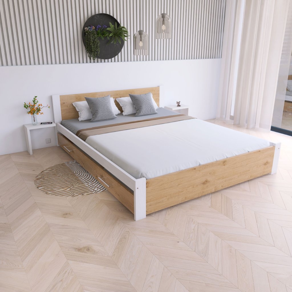 Postel z masivu Iris 180x200 cm, BÍLÁ/Dub Artisan - 2.jakost