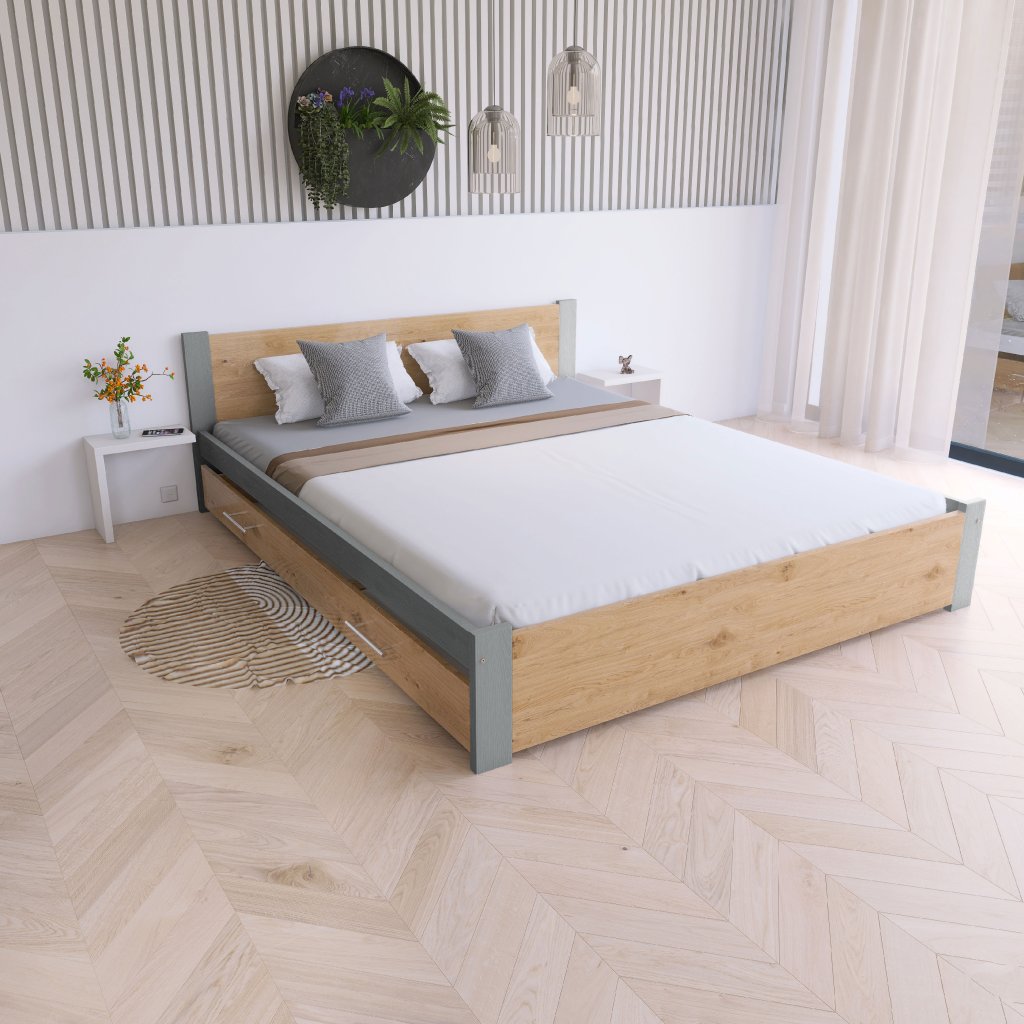 Postel z masivu Iris 180x200 cm, ŠEDÁ/Dub Artisan - 2.jakost