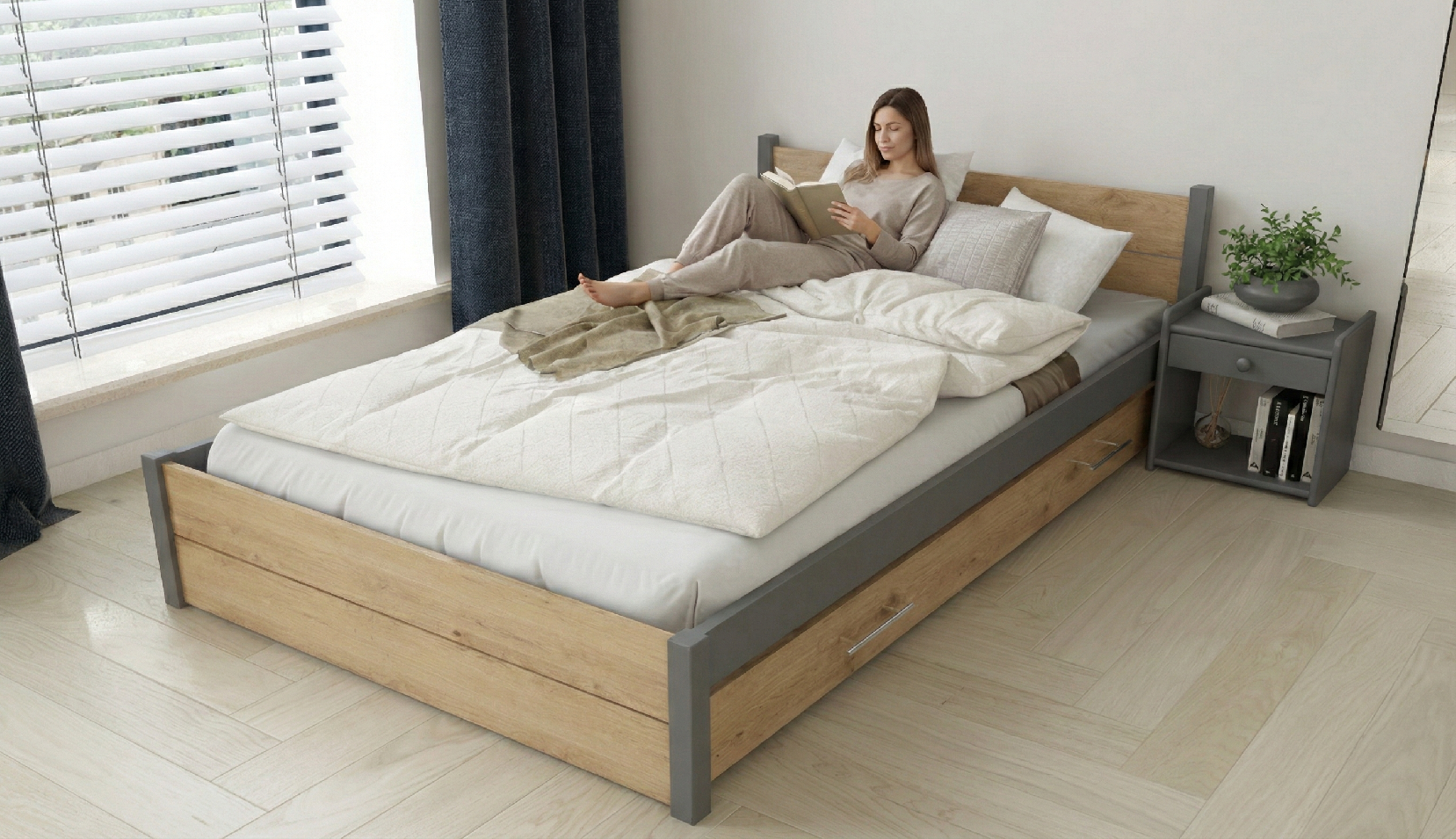 Postel z masivu Iris Double 140x200 cm, GRAFIT/Dub Artisan