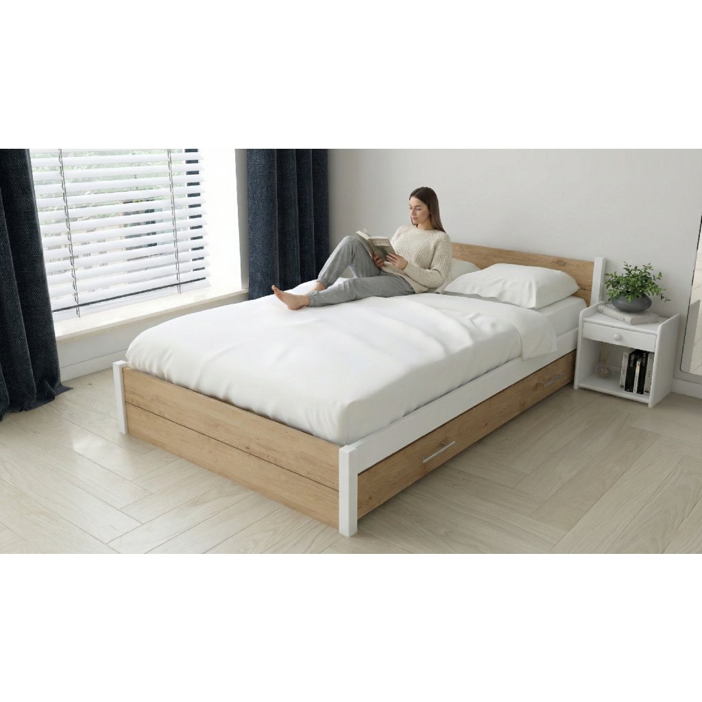 Postel z masivu Iris Double 80x200 cm, BÍLÁ/Dub Artisan