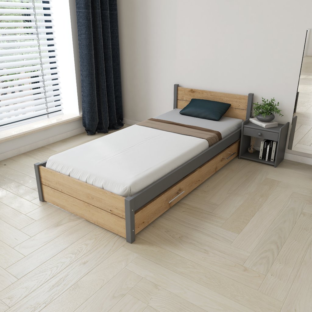 Postel z masivu Iris Double 80x200 cm, GRAFIT/Dub Artisan - 2. jakost