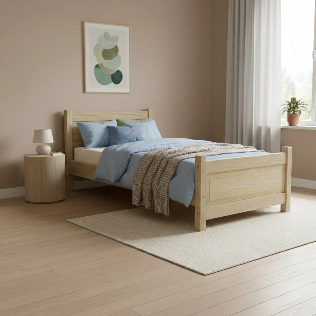 Noble není jen postel. Je to poctivý kus nábytku z masivního dřeva, kde se precizní řemeslné zpracování setkává s nadčasovým designem. Čisté linie nechávají vyniknout přirozenou krásu dřeva a konstrukce navržená s důrazem na ergonomii poskytuje tělu stabilní oporu přesně tam, kde ji potřebuje. Díky pevnému masivnímu rámu se postel stává přirozenou dominantou ložnice a vytváří prostor pro klidný, ničím nerušený odpočinek.